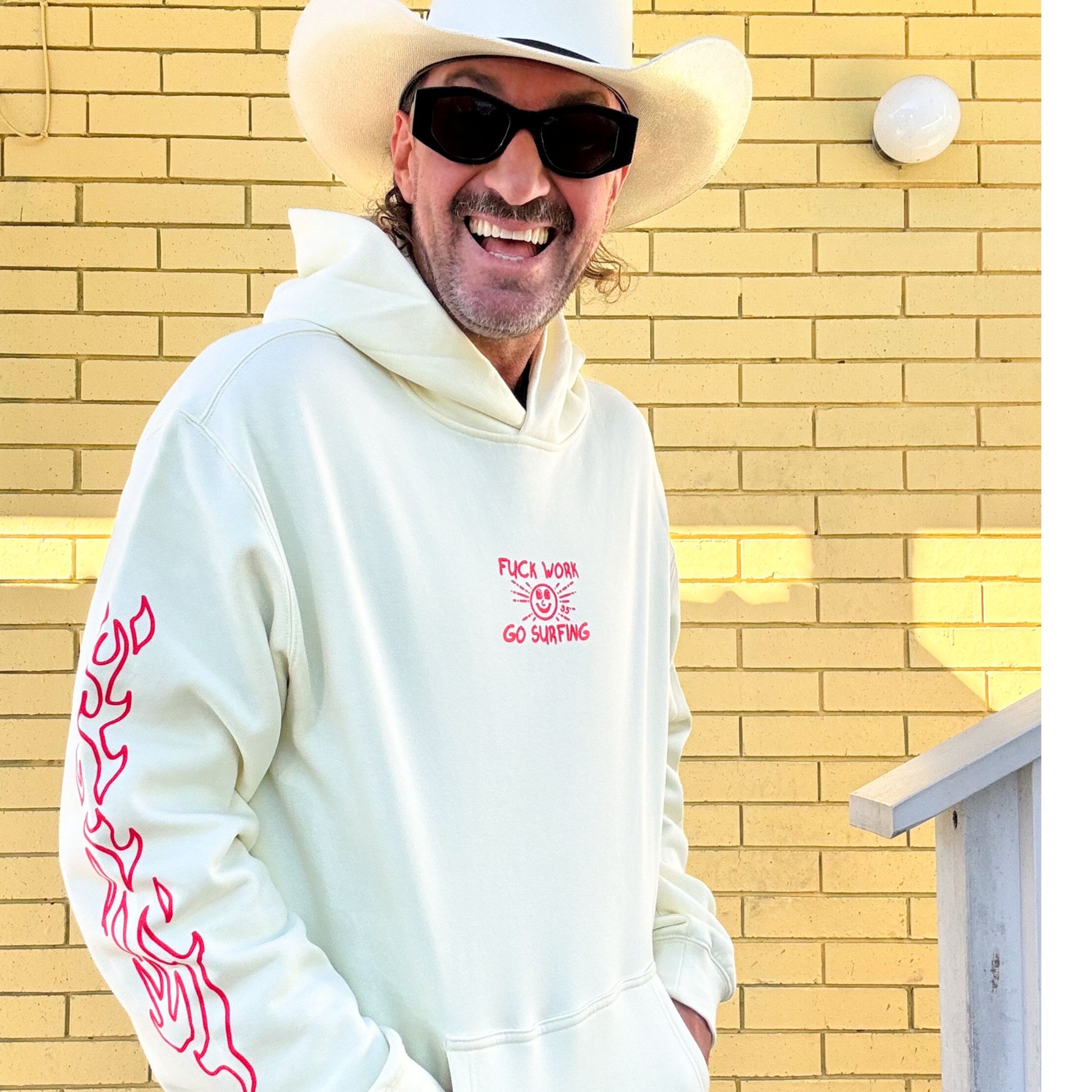 Well have i Got the Hoodie for you. Wear this bad boy to the next work do and start a revolution. You will be chaired up the beach no matter where you go when you wear the F-Work Go Surfing Hoodie.