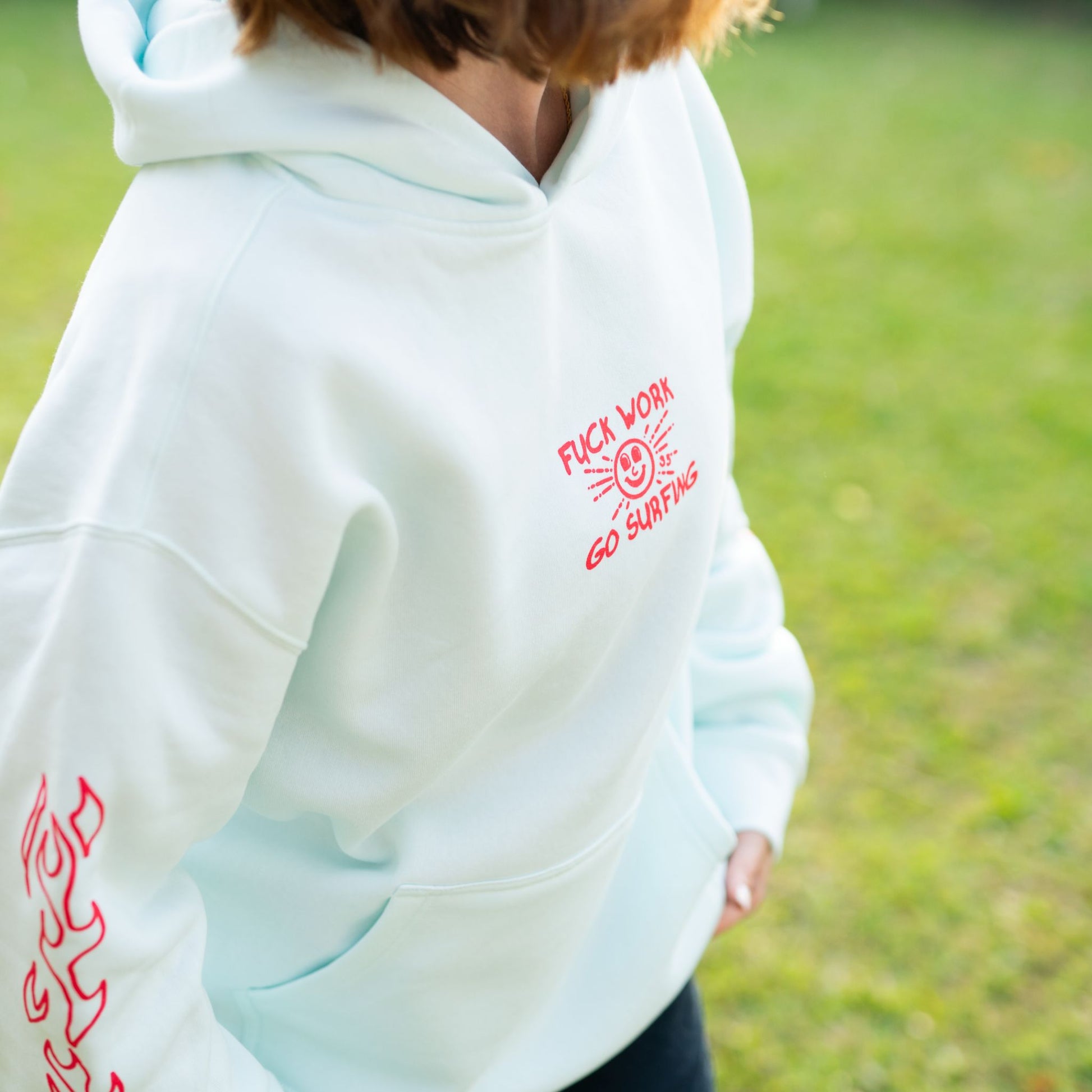 Well have i Got the Hoodie for you. Wear this bad boy to the next work do and start a revolution. You will be chaired up the beach no matter where you go when you wear the F-Work Go Surfing Hoodie.